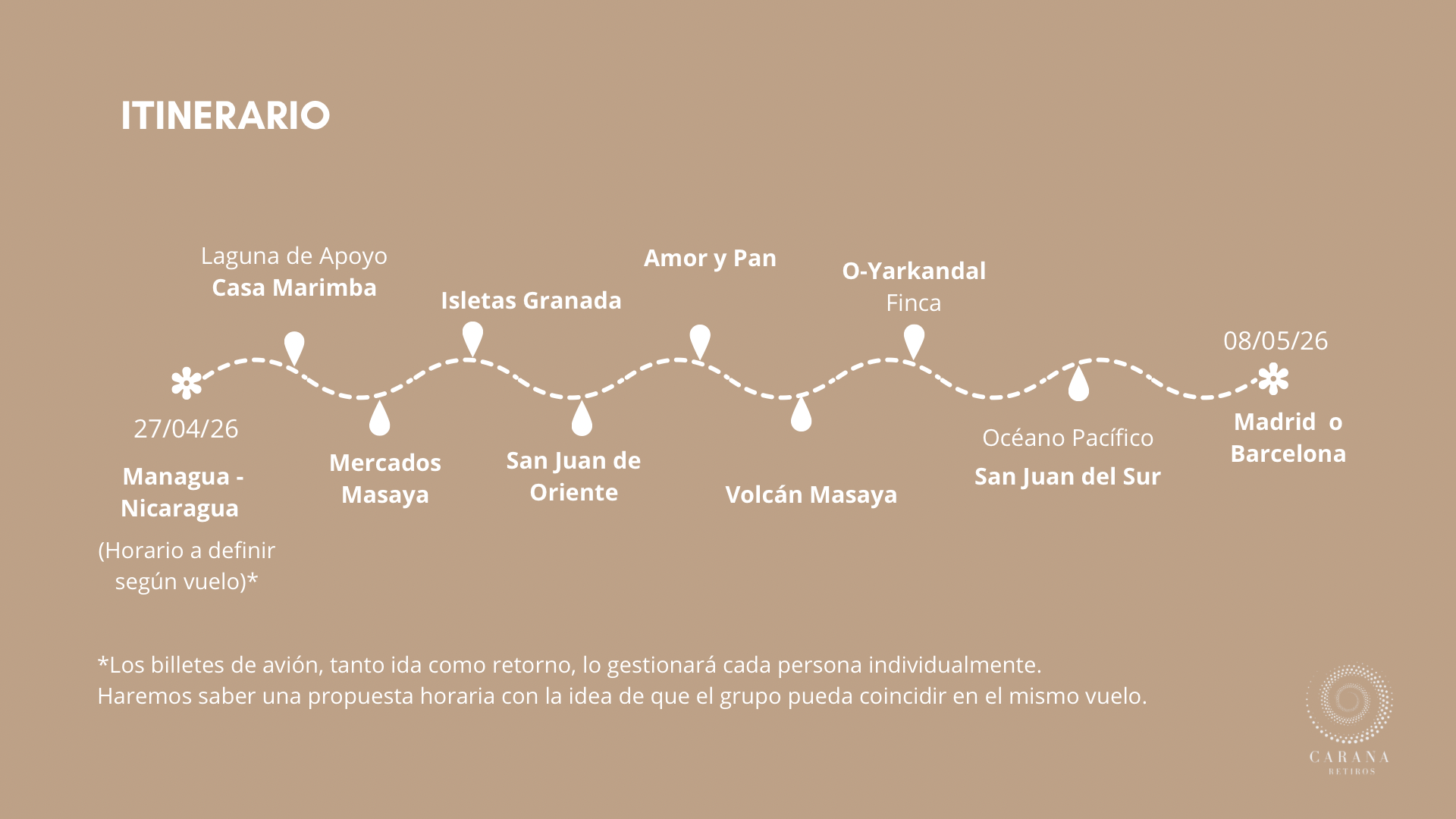 Vinyasa yoga · Traslado a Managua · Vuelos de vuelta a casa